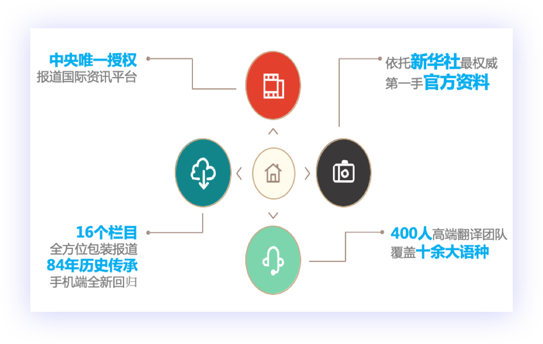 中央唯一授权报道国际资讯平台,16个栏目,全方位包装报道。日活用户1200,0000